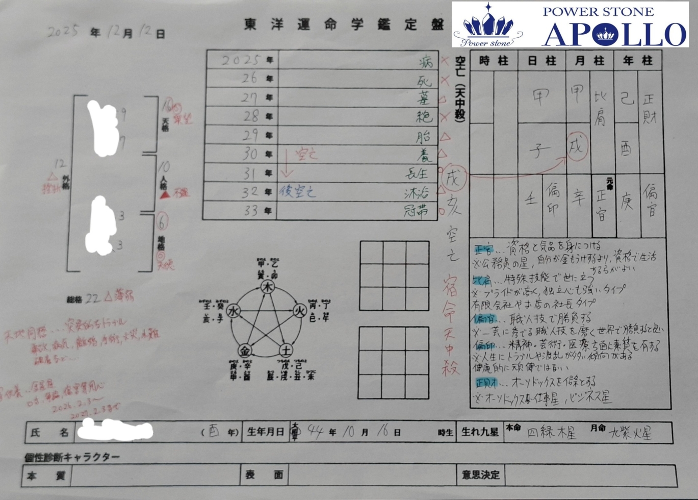 ご予約の前日に予め運命鑑定盤を作成するのに、出生時間を伺った