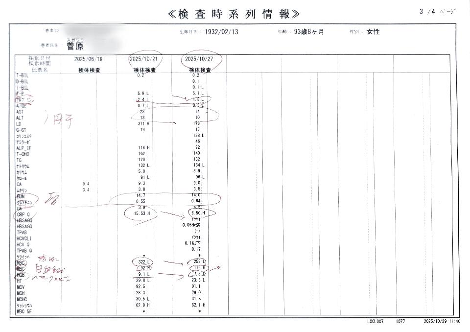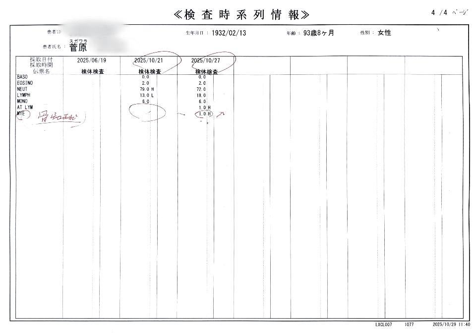 結果的には、がん転移の虫垂から出血があり、極度の貧血から感染症になっている可能性があるとのこと